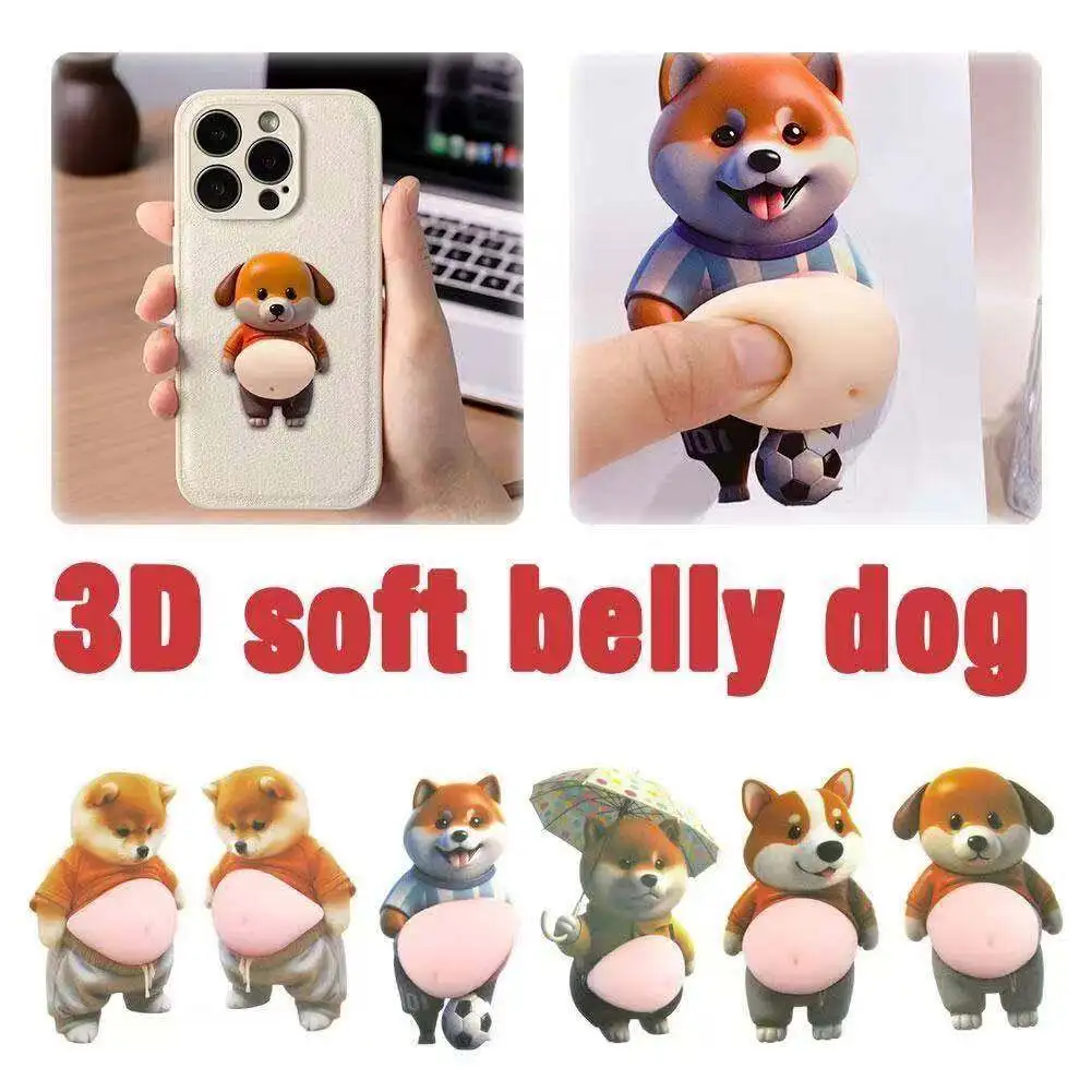 Adesivo per pancia di cane Squishy Shiba Inu 3D Simpatico cucciolo arancione con un morbido sfondo rosa Adesivo autoadesivo in silicone per feste