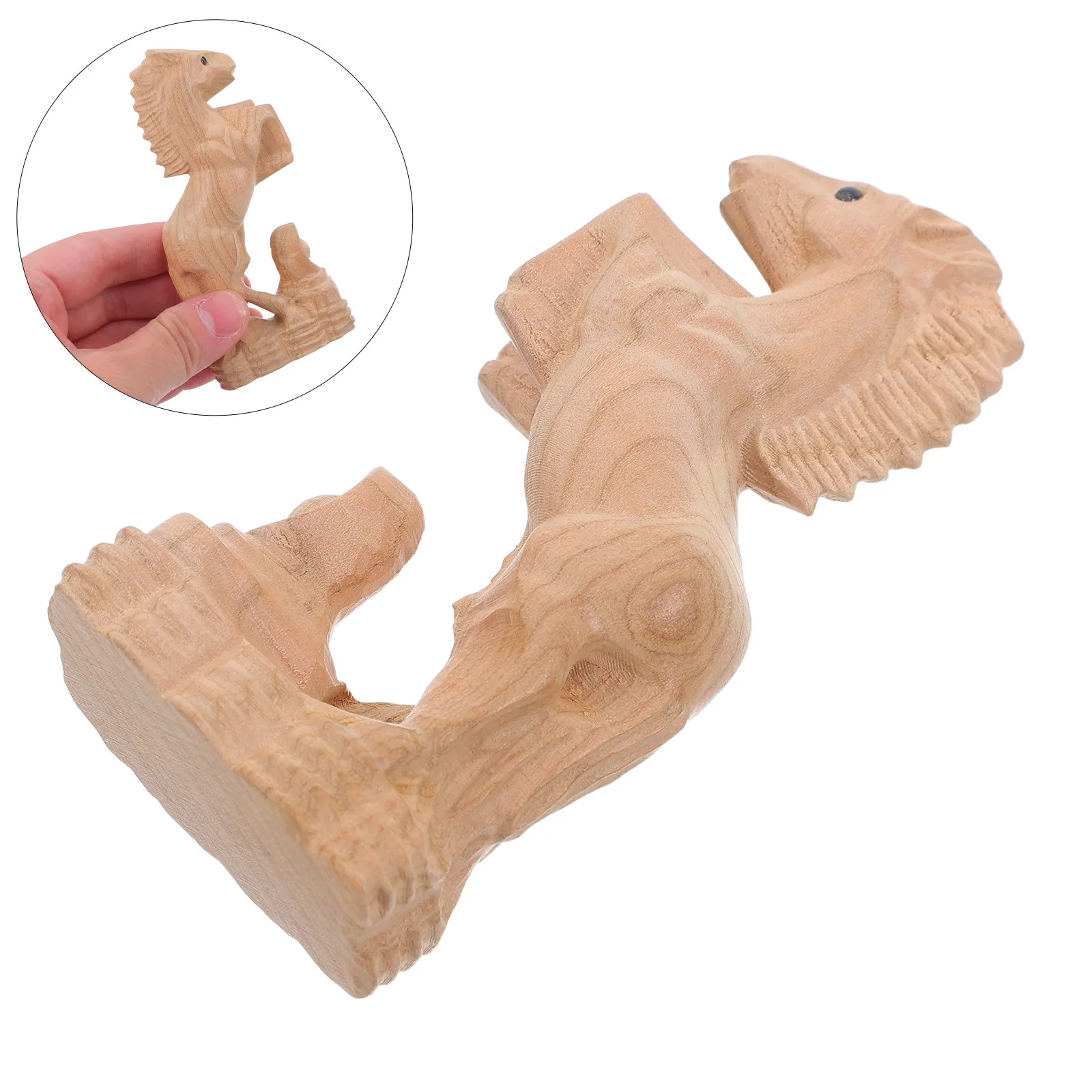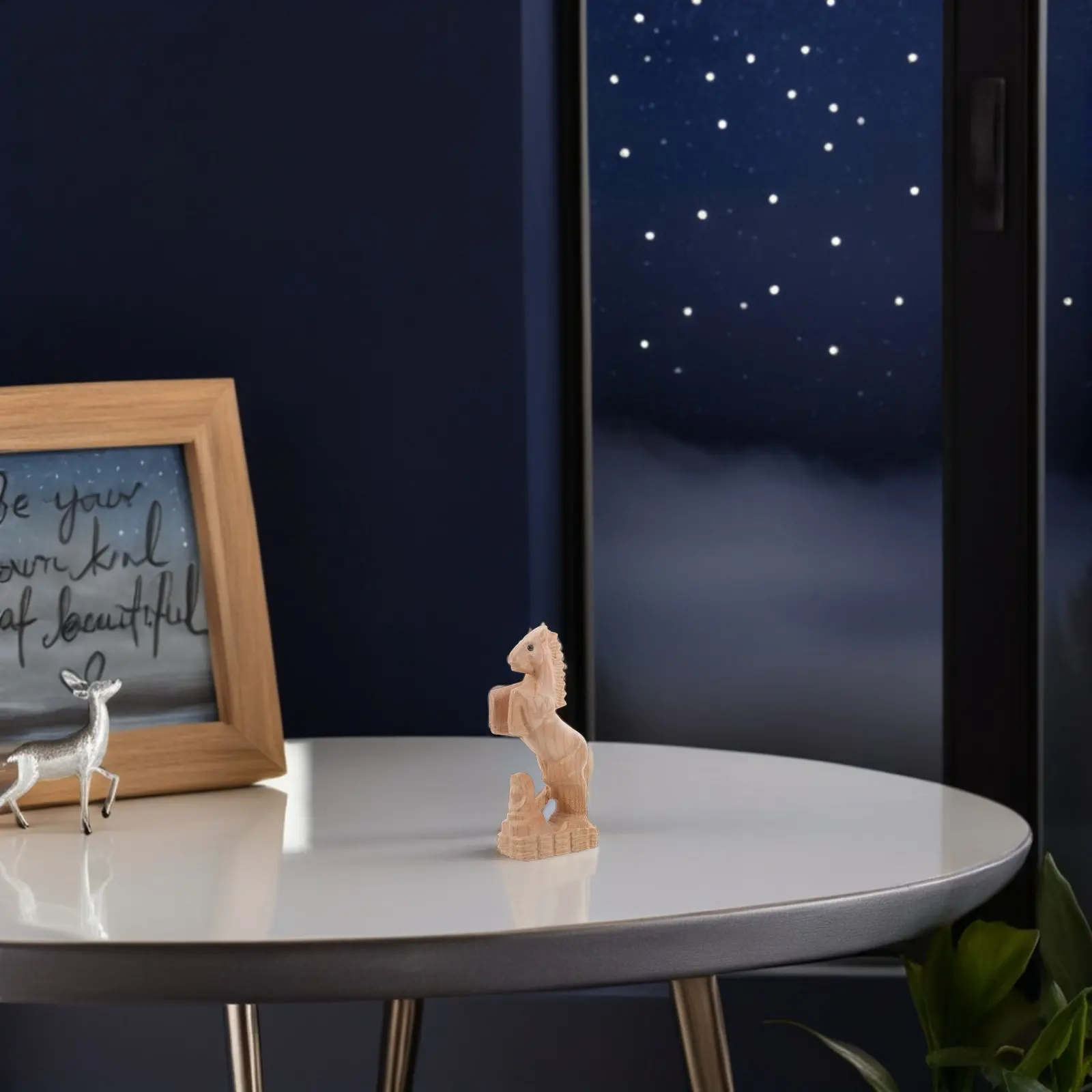 Statua di Cavallo in Legno Intagliata a Mano, Scultura di Stallione in Posa Agonizzante, Legno Naturale, Arredamento Rustico per Casa di Campagna, Soggiorno, Ufficio