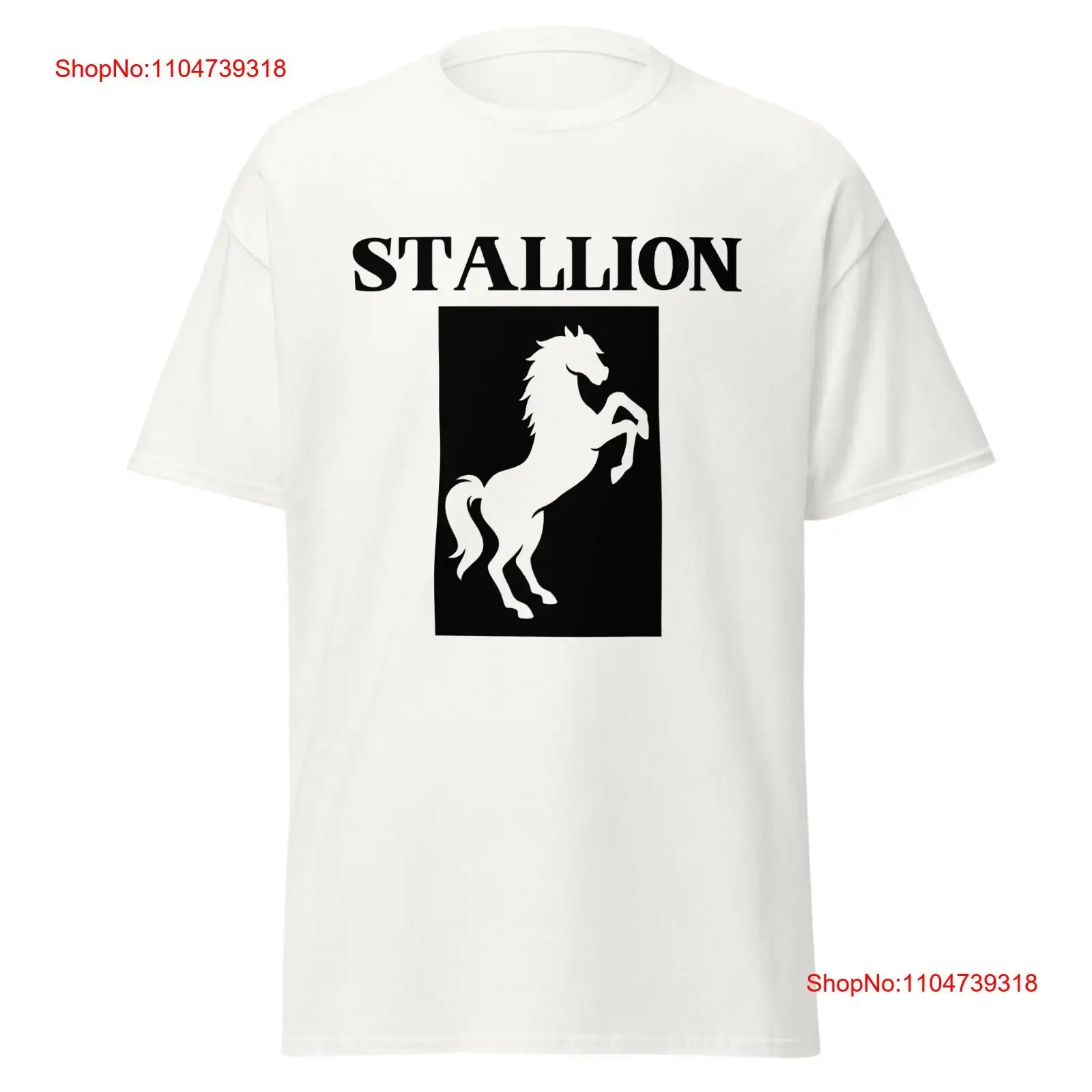 Stallion Maglietta classica da uomo Horse Raising Cotton vintage lavata Abiti eleganti firmati di moda allungati leggermente