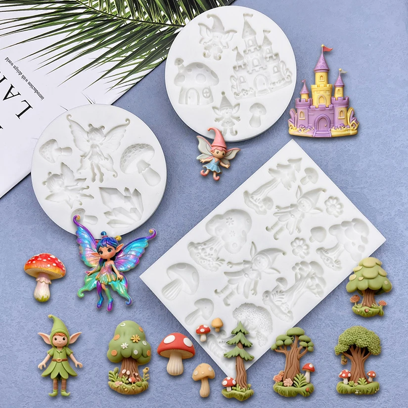 Stampo in Silicone per Decorazioni di Torte e Cupcake a Tema Fungo, Foresta Incantata e Castello, Strumenti per Decorazione Dolciaria