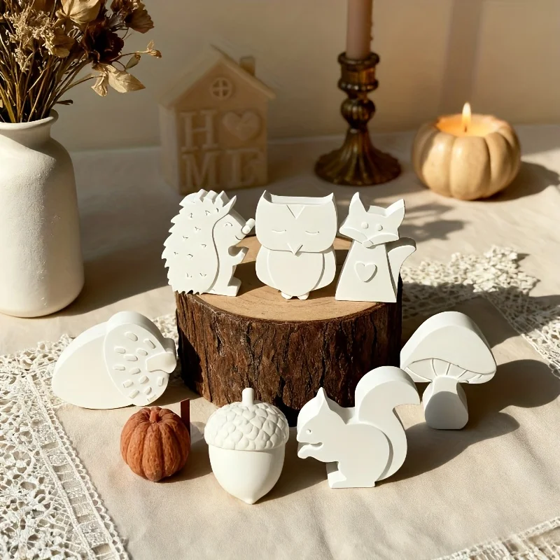 Stampo in silicone animale in miniatura a 1 cavità / 6 cavità - Disegni di riccio, gufo, scoiattolo, volpe, funghi per colata di resina