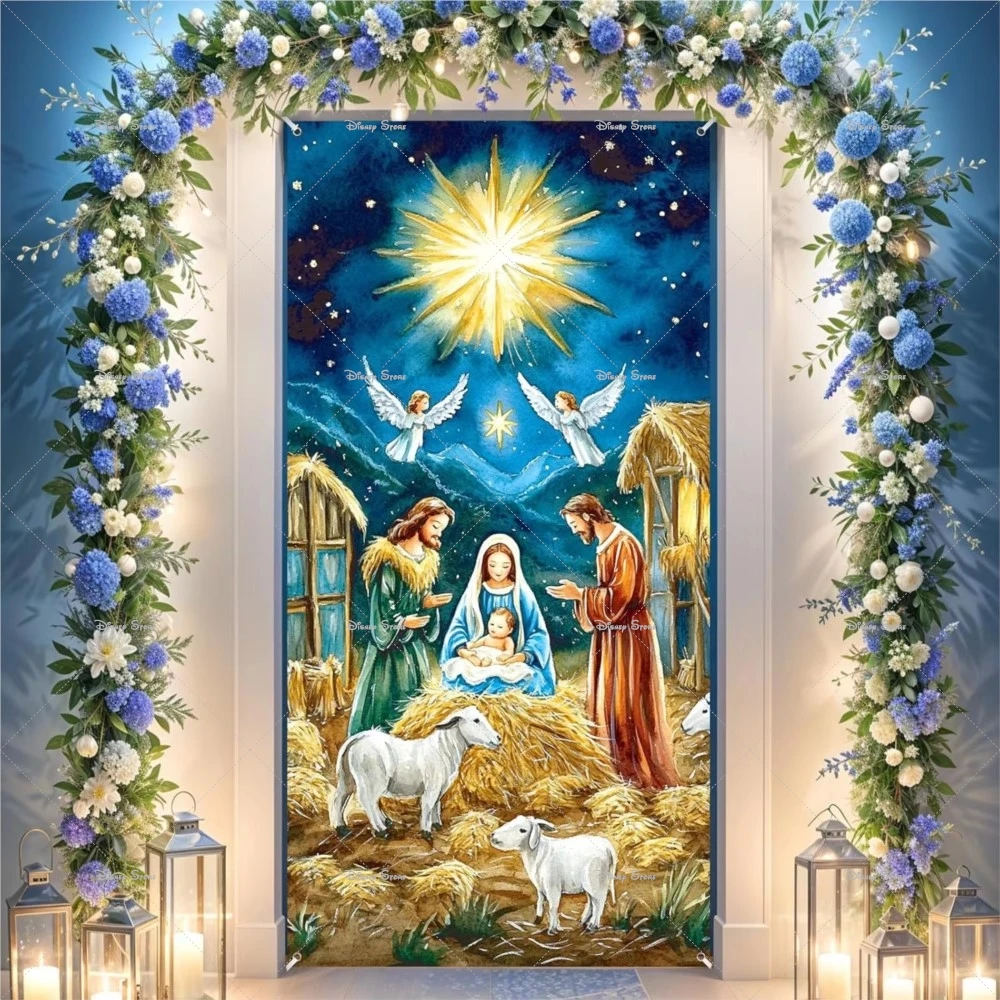 Buon Natale Gesù Tema Sfondo Banner con stelle luminose Culla Decorazione durevole della copertura della porta Regalo di oggetti di scena per feste di Capodanno