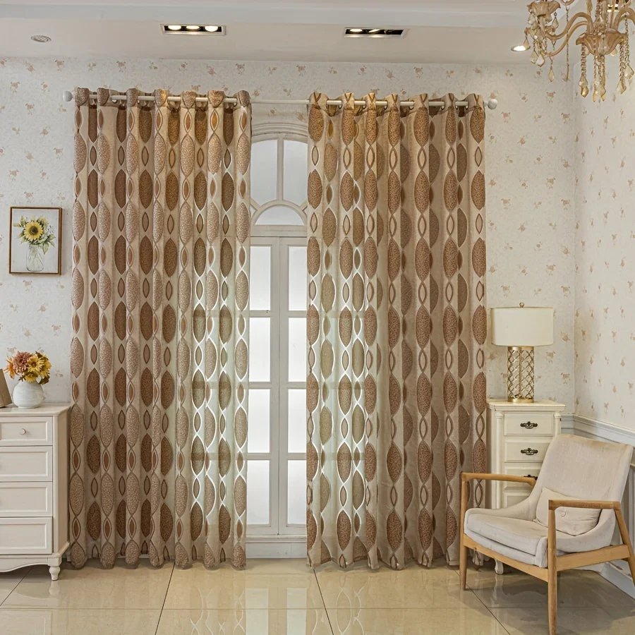 Tende Trasparenti con Motivo Geometrico a Foglie, Voile Moderno di Lusso Filtrante la Luce, Tende Pronte all'Uso per Soggiorno