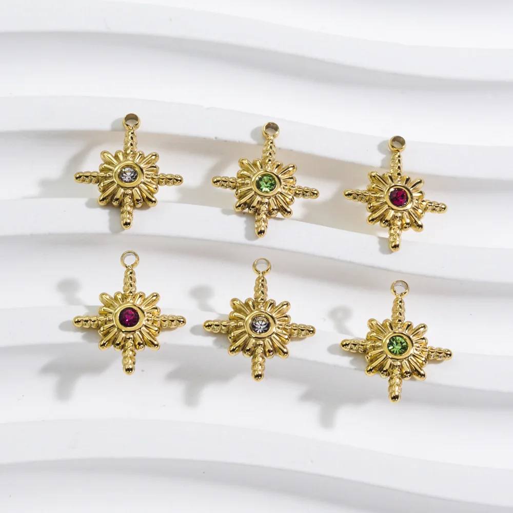 3 pezzi in acciaio inossidabile Color oro a otto punte con ciondoli in pietra di cristallo con stella fai da te creazione di gioielli con collana