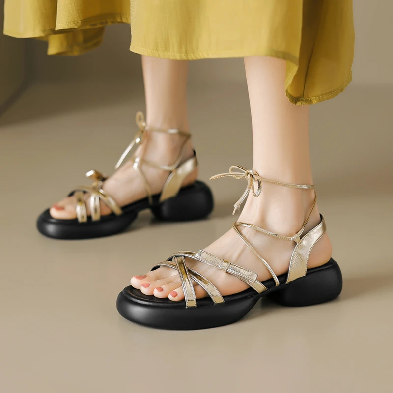 Nuovi sandali da donna estivi in vera pelle design alla moda scarpe casual da donna traspiranti sandali da spiaggia all'aperto da donna taglia grande 42