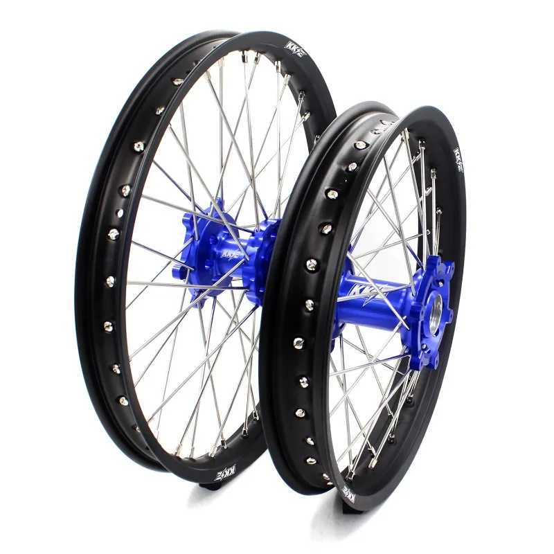 【2025】 Set di Ruote e Cerchioni per Moto Fuoristrada Enduro Compatibile con YAMAHA WR250R 2007-2022 Mozzo Blu Cerchio Nero