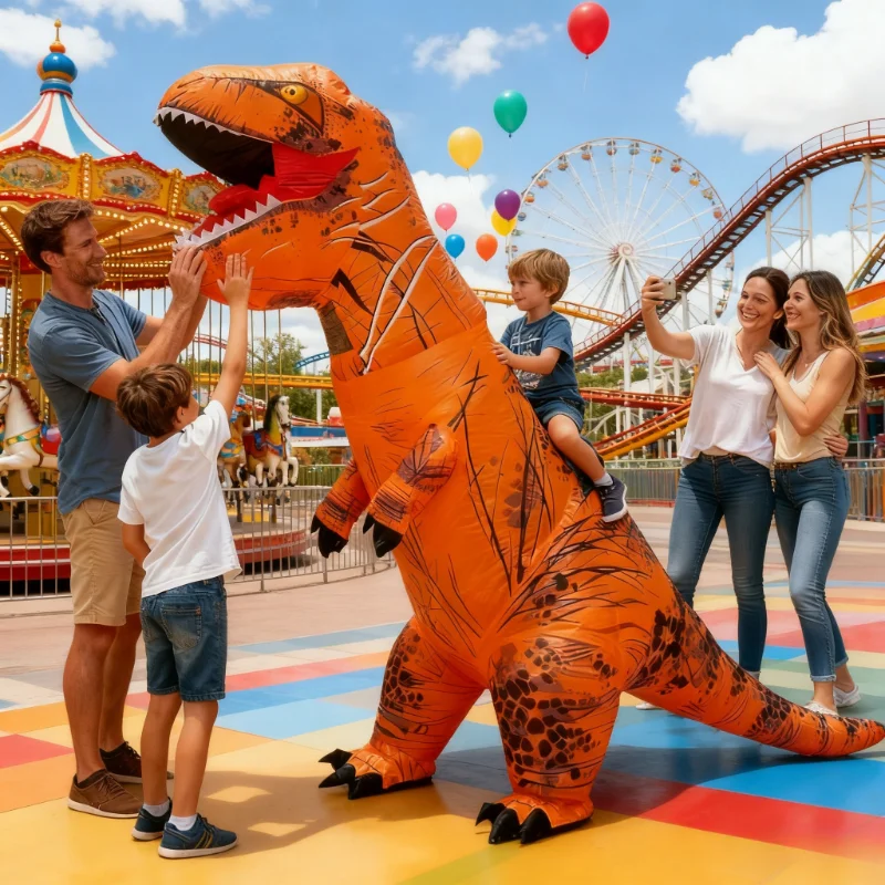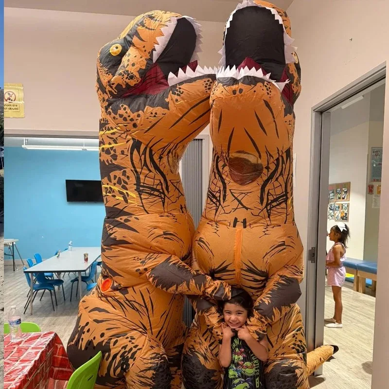 Costume gonfiabile per adulti, divertente da equitazione, dinosauro marrone, periodo giurassico, T-Rex, cosplay, costume gonfiabile per feste a tema carnevale di Halloween