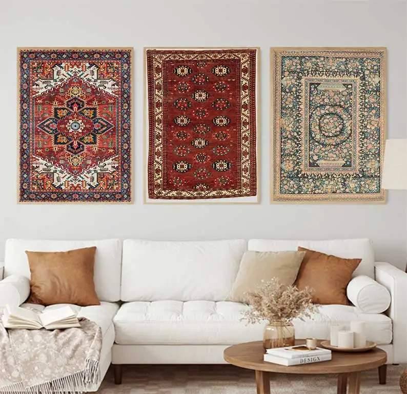 Tappeto Persiano Medievale Orientale, Stampe su Tela, Poster Astratti, Dipinti di Tappeti Vintage Rinascimentali, Quadri da Parete