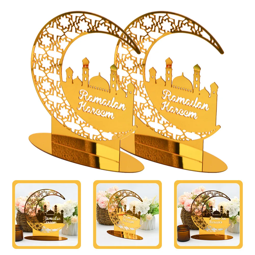 2 Pezzi Ornamento Acrilico Raffinato per Eid Fitr, Decorazione Artigianale Dorata di Lusso a Doppia Faccia Mubarak per Feste Ramadan, Tavolo e Interni