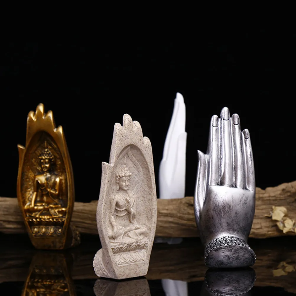 Decorazione da Tavolo a Forma di Mano di Buddha, Arte in Resina Dorata, Ornamento Creativo Fatto a Mano, Adorno per Casa, Regalo per Feste