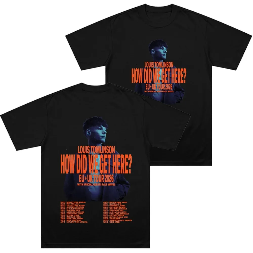 T-shirt del tour UE e Regno Unito 2026 'How Did I Get Here' - Merch Louis Tomlinson, T-shirt trendy in cotone unisex per uomo e donna, perfetta per l'estate