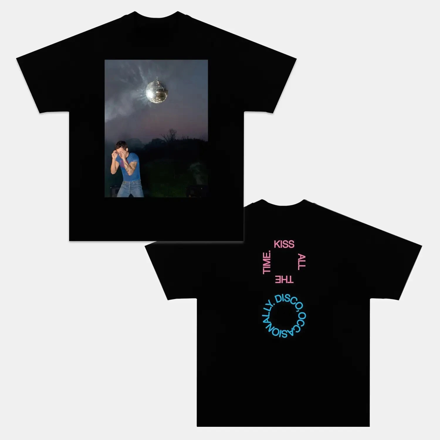 T-shirt con stampa poster dell'album Kiss All The Time Disco Occasionally di Harry Styles, in cotone lavato effetto vintage, oversize, unisex, estiva.
