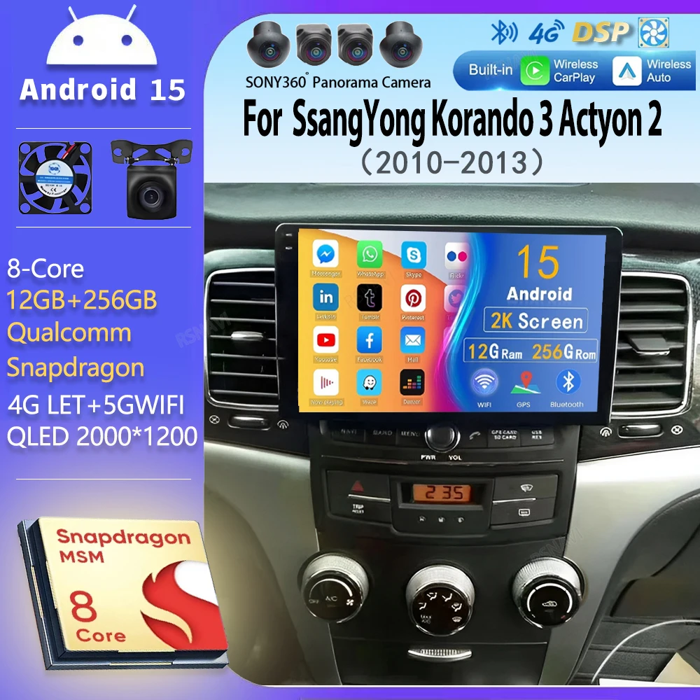Android 15 Per SsangYong Korando 3 Actyon 2 2010 - 2013 2K QLED Stereo Autoradio Lettore Video Multimediale GPS Auto CarPlay 4G DSP