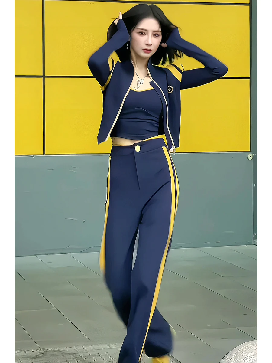 Or Zipper Jaet Set da donna Primavera Autunno Faionable Dresigh Vita Gamba larga Tenda Pantaloni Tee-pezzo Set Trendy