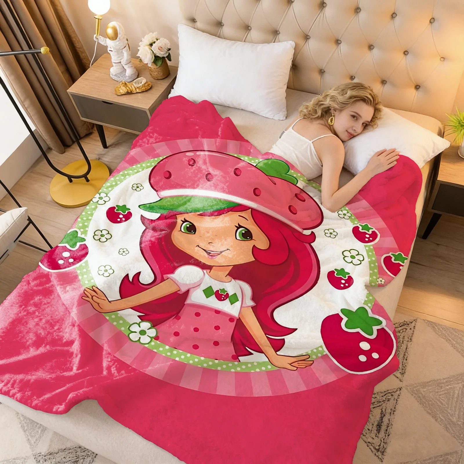 Coperta al ginocchio Coperte da tiro per l'inverno Coperta da tiro in microfibra oversize per bambini in pile leggero per divano letto Decorazione Shortcakes-strawberrys-P