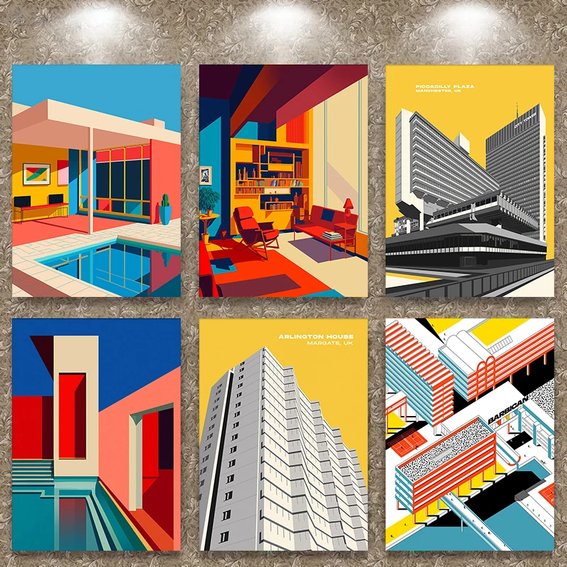 Poster di Architettura Astratta per Terrazza sul Tetto di Appartamento Triplex, Quadro Geometrico su Tela, Decorazione per Soggiorno e Casa