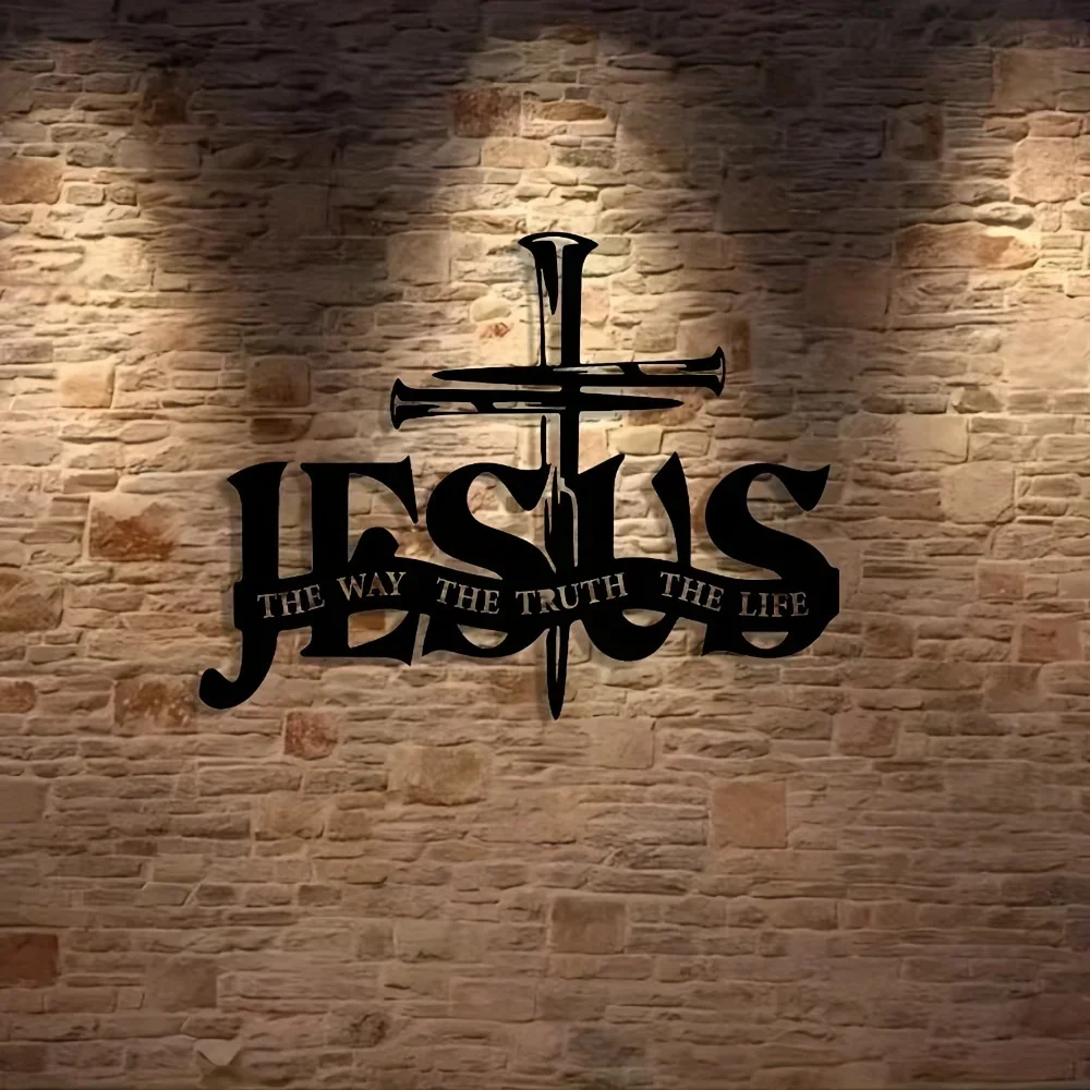 Elegante arte da parete con croce in metallo nero - Decorazione in stile vintage 'Way Truth Life' per la casa, il soggiorno, la camera da letto, la terrazza, la cucina