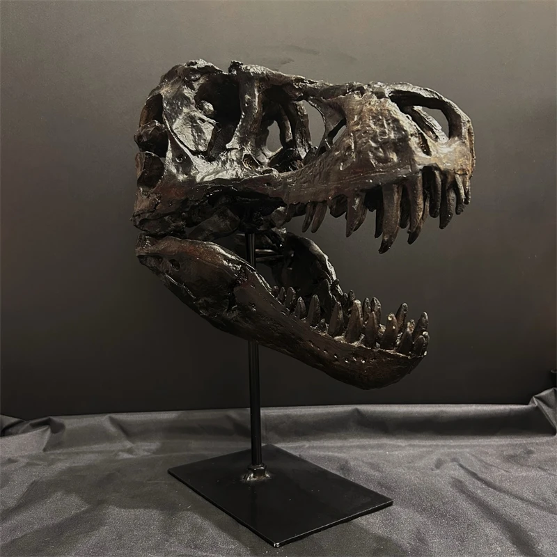 Supporto per teschio di dinosauro Modello di scheletro realistico Decorazione da tavolo per studio domestico in stile Museo in resina premium per uomo Regalo di compleanno