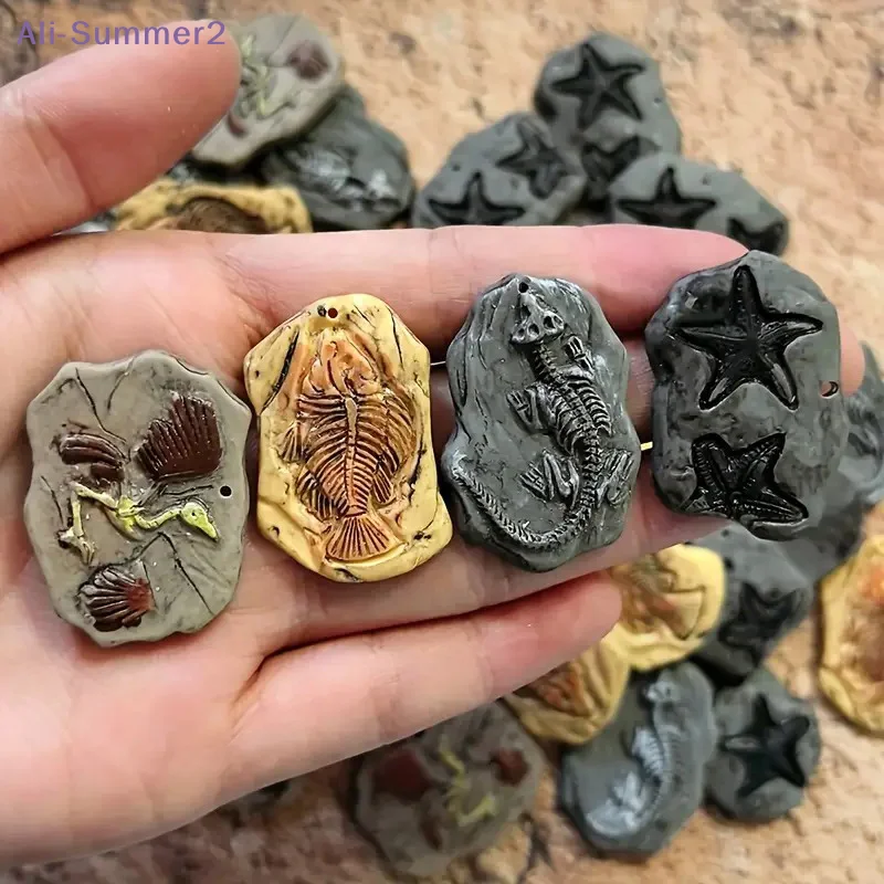 Mini dinosauro fossile modello set statue in resina vintage con pesci uccelli disegni micro paesaggio casa delle bambole ornamento giocattolo artigianato fai da te