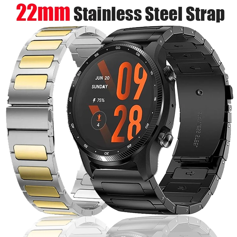 Cinturino in acciaio inossidabile da 22 mm per Ticwatch Pro 3 Ultra GPS Smartwatch cinturino per TicWatch Pro 2021 2020/GTX/GTW/S2 E2/GTH 2