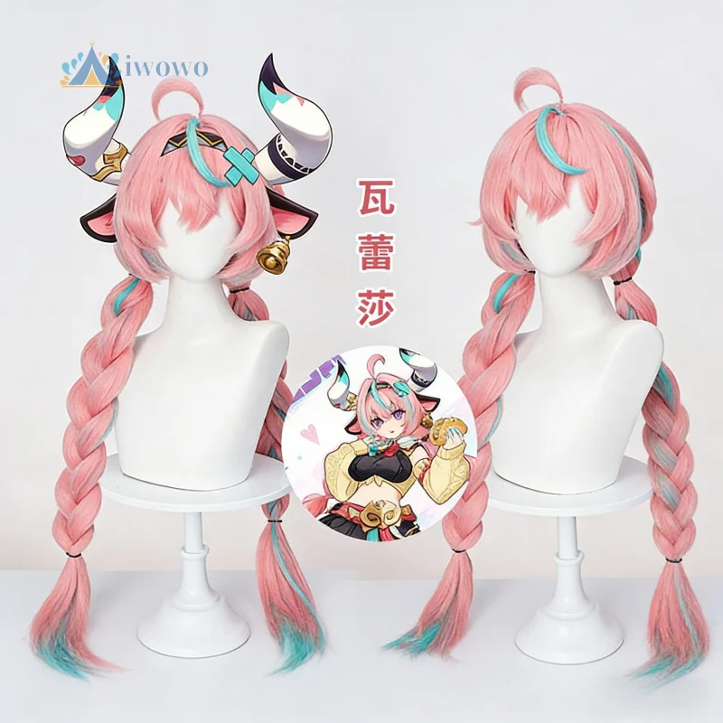 Parrucca cosplay Varesa Game Genshin Impact Parrucca sintetica resistente al calore con doppia coda di cavallo rosa blu Parrucche natalizie di Halloween
