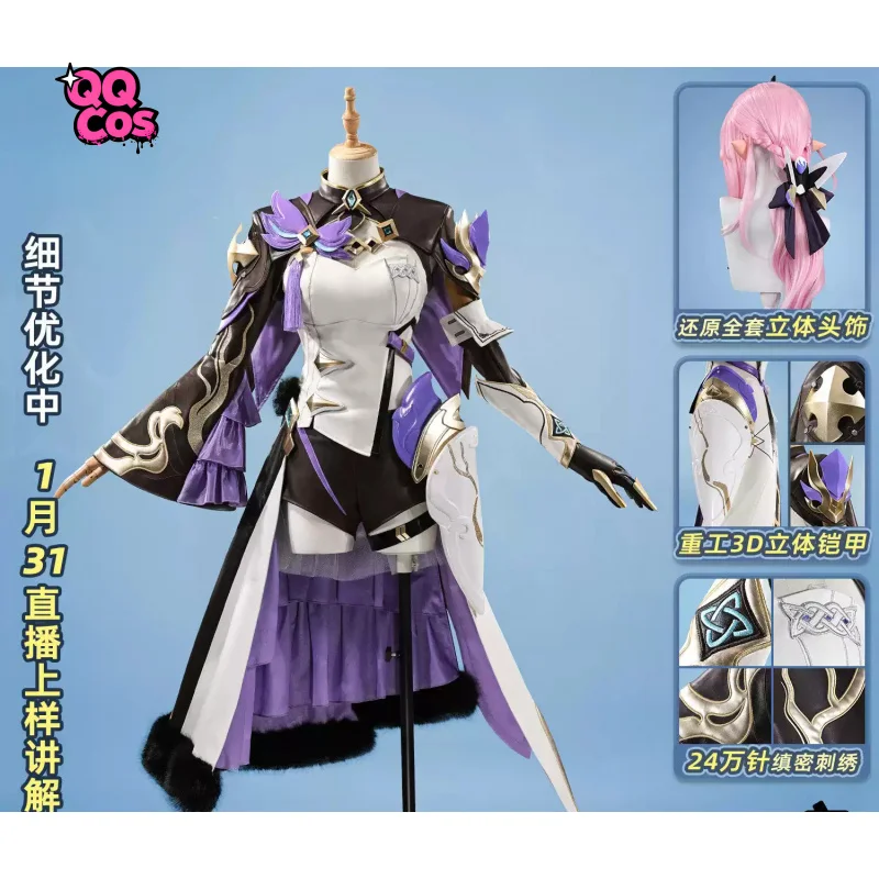 Costume Cosplay di Elysia Miss Pink Elf da Honkai Impact 3rd, Set Completo per Battaglia Fisica QQcos