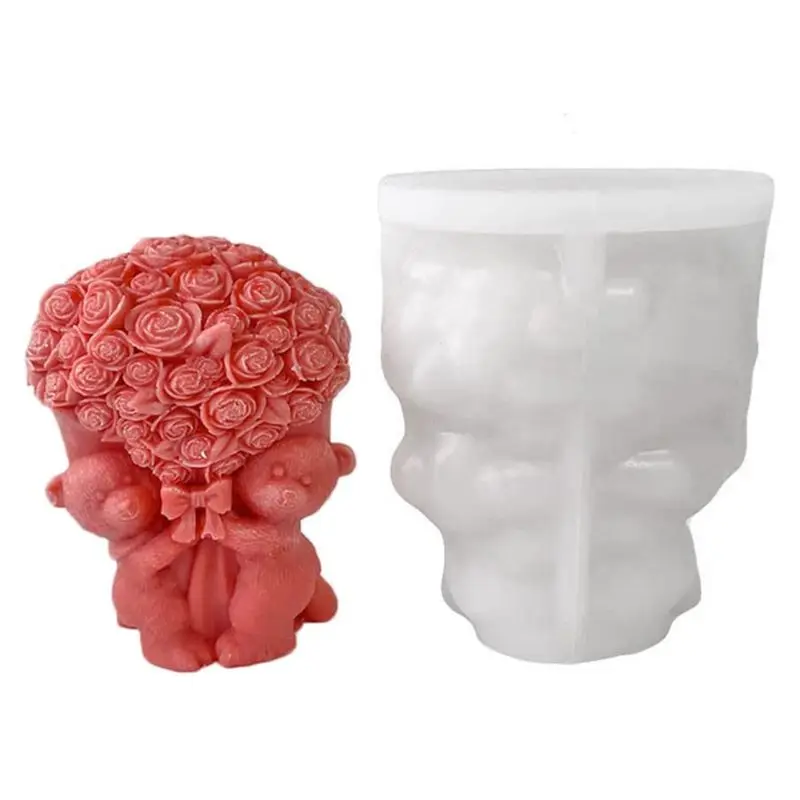 Love Rose Bear Stampo Aromaterapia fai da te Candela Torta Stampo in silicone Decorazione domestica Stencil in silicone regalo creativo di San Valentino