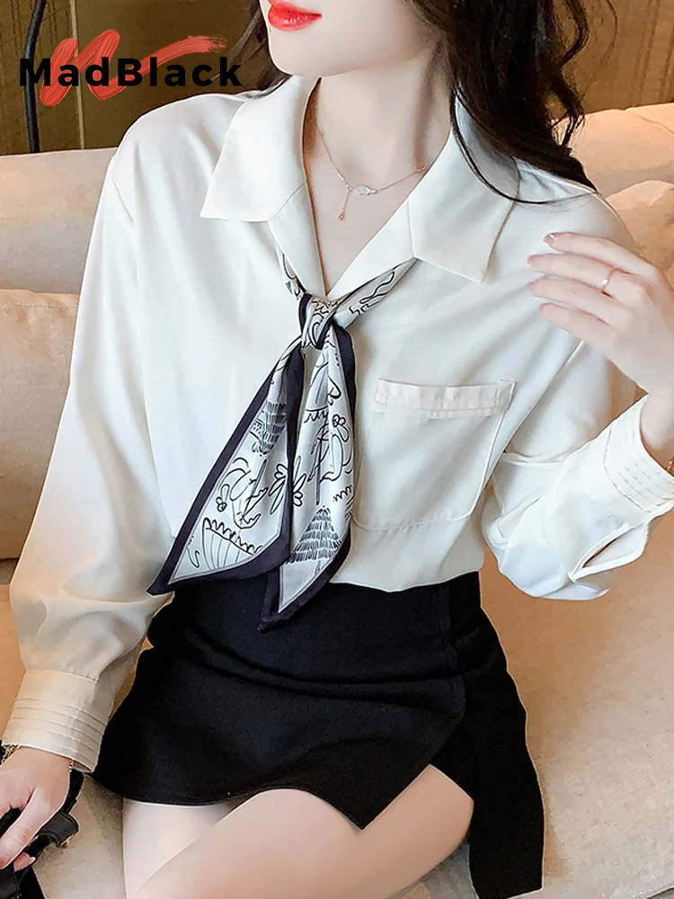 MadBlack-Camicia europea da donna, patchwork sexy con nastro a collo alto, camicetta S-2XL ampia a maniche lunghe da lavoro, primavera 2026 T5D811CC