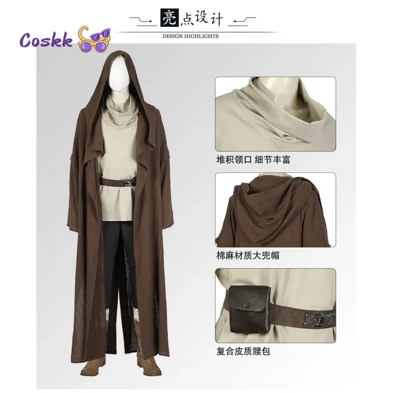 Obi Wan Kenobi Cosplay Uomini adulti Abito con cappuccio Jedi Knight Abiti Laku Tunica Costume Halloween Robe Uniforme con cappuccio Set completo