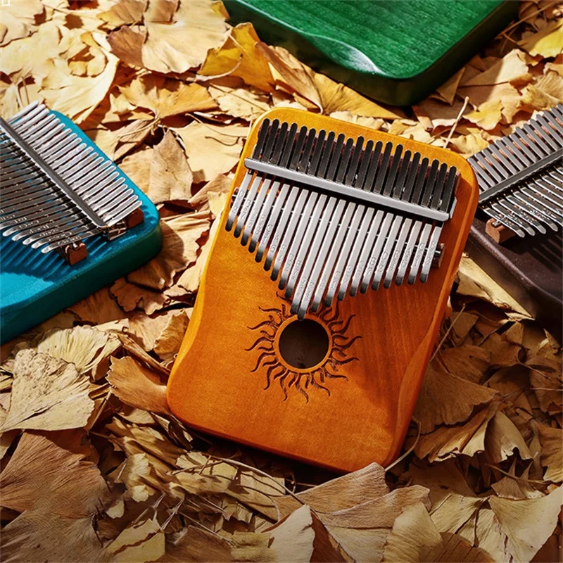 Kalimba in Stile Giapponese con 21 Tasti in Acero Bianco, Motivo Dio del Sole, con Strumento di Accordatura e Adesivi per Performance Musicali