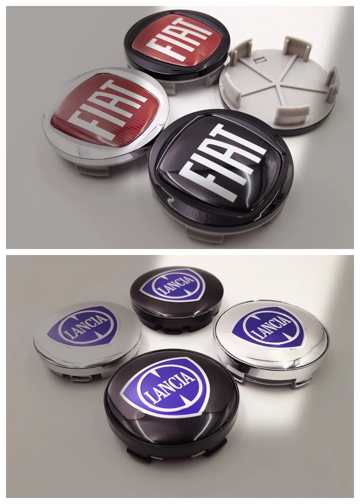4 Pezzi Coprimozzi in Alluminio da 56mm 60mm per Auto, Logo FIAT 500 Lancia Kappa Delta 3 Ypsilon Musa Voyager