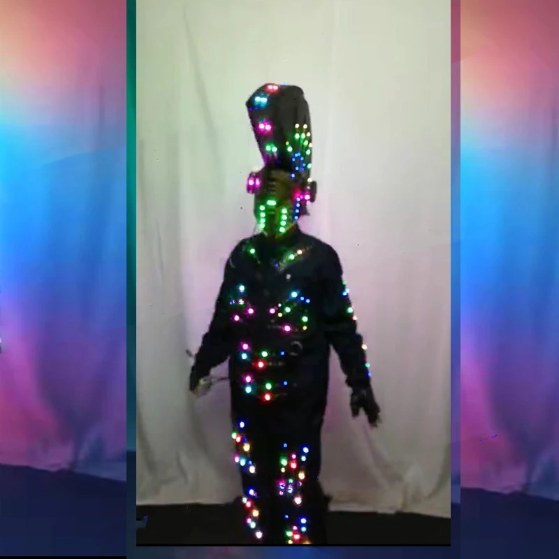 Abbigliamento luminoso alla moda Abito da robot Abiti a LED Maschera per casco luminoso Spettacolo di talenti Abiti a LED da uomo Abbigliamento da ballo per feste future
