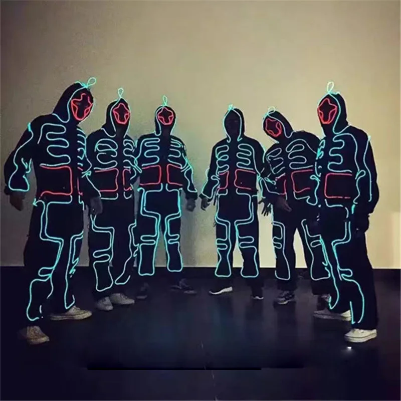 Halloween LED Suits Luminous Costumes Illuminated Glowing Hooded Men EL Clothes Dance Fashion Talent Show LED Light Clothing