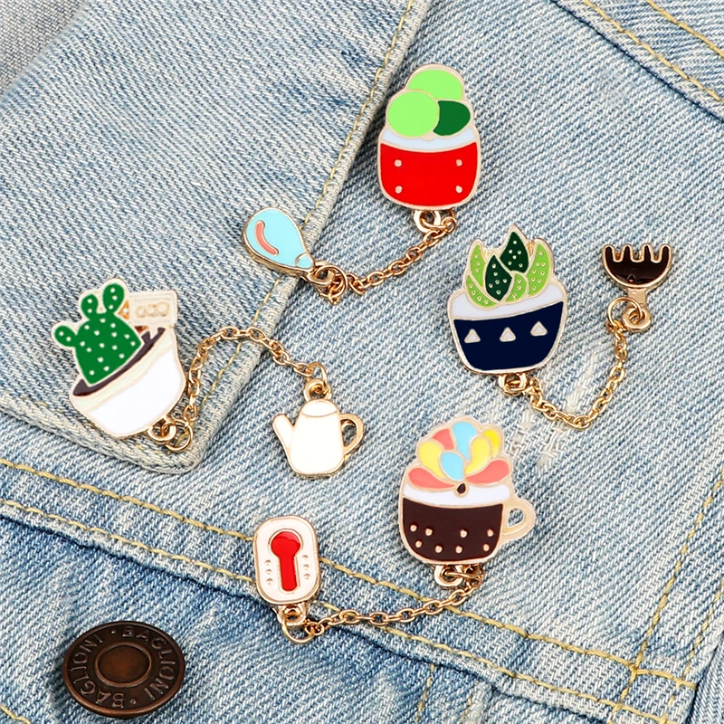 Spille in vaso di cartone animato pianta Cactus distintivi creativo catena in metallo smalto Pin s zaino giacche gioielli moda Pin per donna bambini