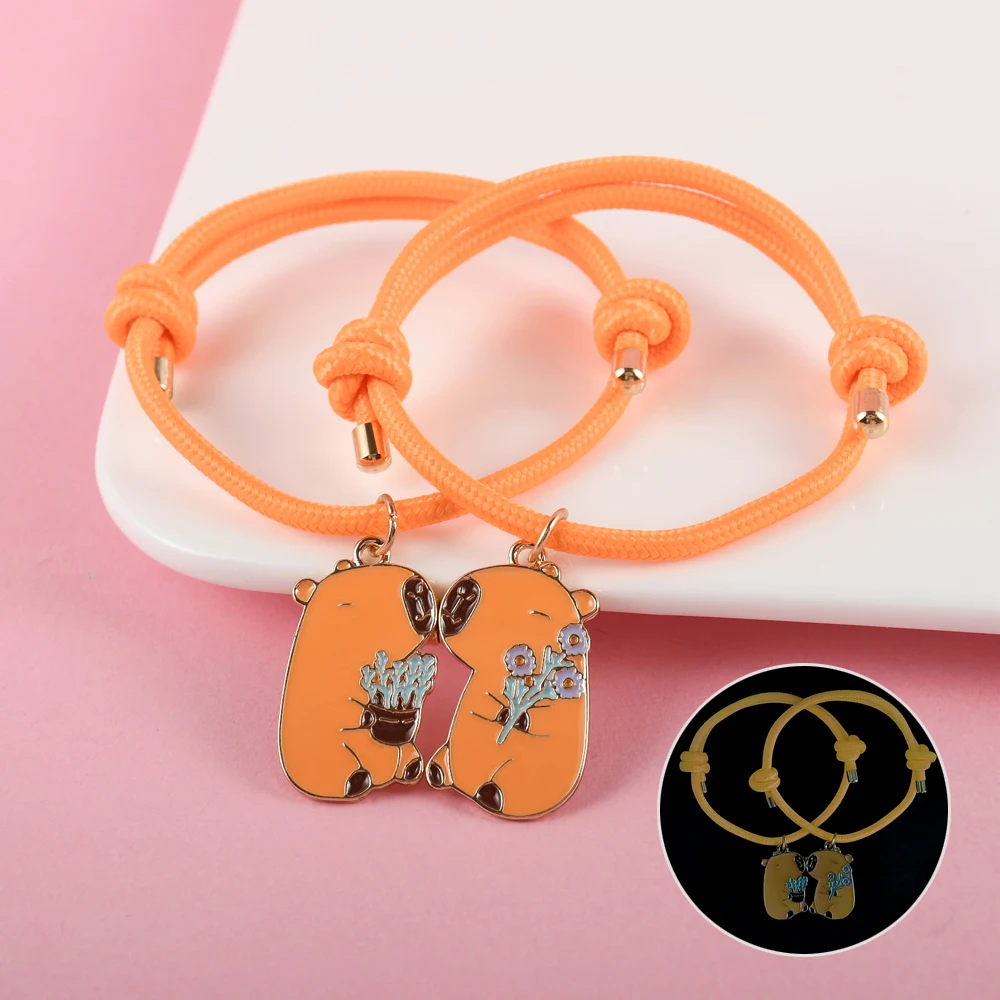 2 pezzi/set simpatico braccialetto Capibara Best Friend con una tenuta di fiori e una pianta in vaso per regali di amicizia per ragazze
