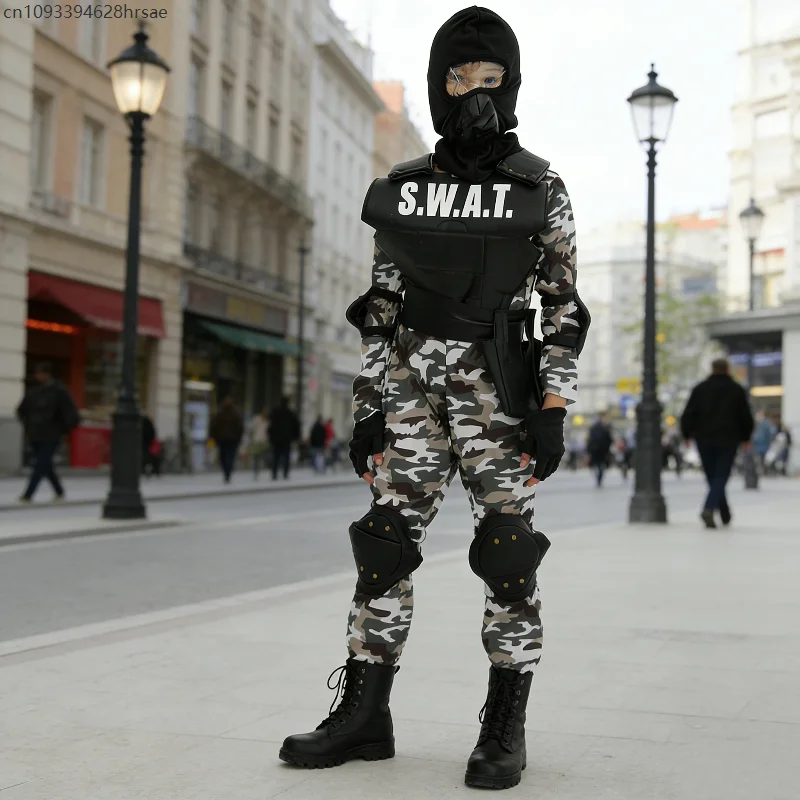 Costume da SWAT per Bambini, Costume da Poliziotto Speciale, Travestimento per Carnevale, Festa di Purim, Cosplay, Giornata Mondiale del Libro, Spettacoli