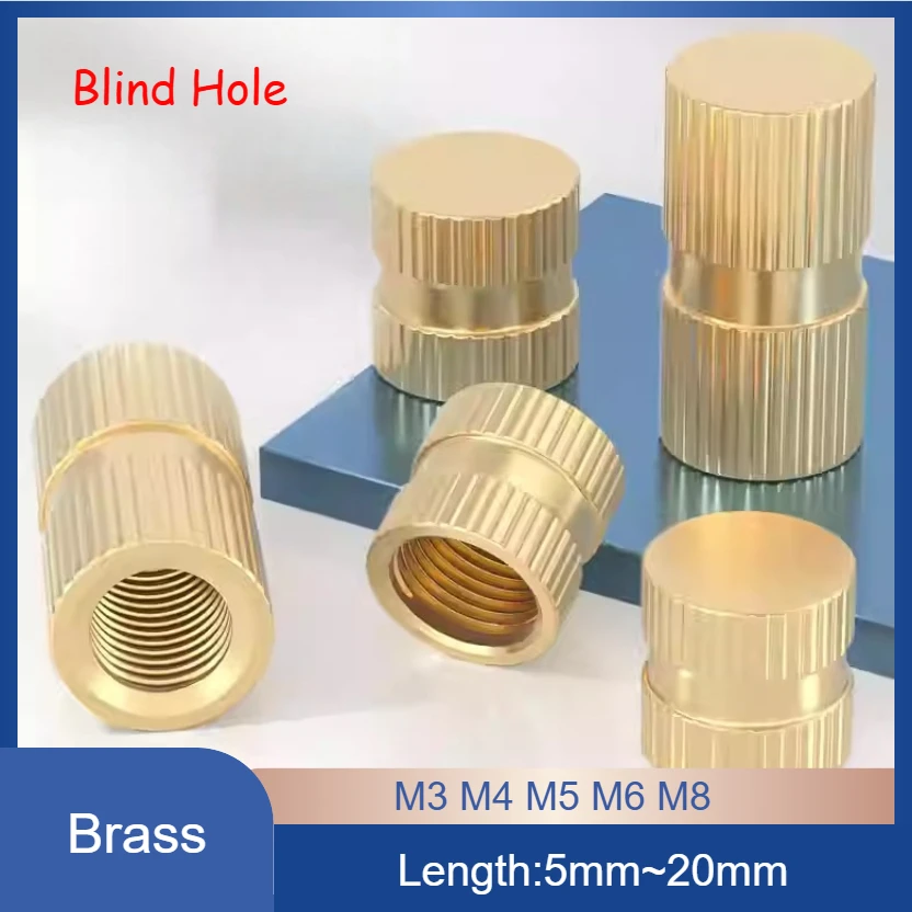 Dadi per inserti con foro cieco zigrinato in ottone Inserti incorporati con set di calore per stampaggio ad iniezione M3 M4 M5 M6 M8