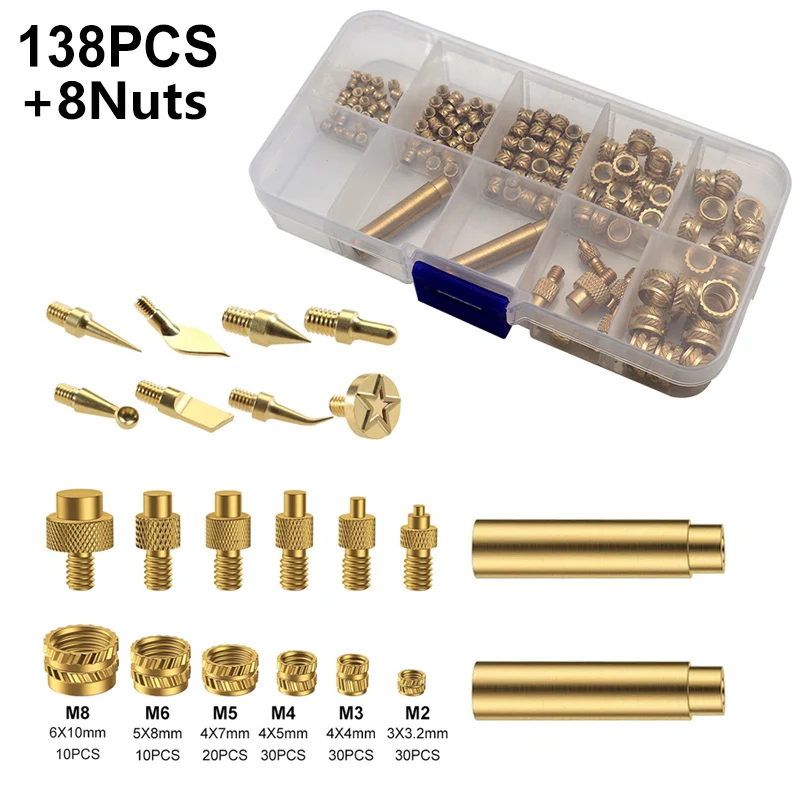 Accessori per la stampa 3D Inserto termofusibile in ottone Punte per dadi zigrinati Strumento per l'inserimento del calore dell'impianto a conduzione termica M2 M3 M4 M5 M6 M8
