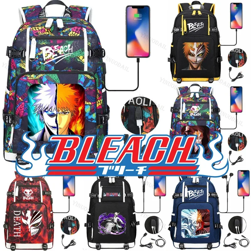 Shihouin Yoruichi Zaino BLEACH Tema Zaini con USB Mochila De Viaje per la cancelleria di studio Rukia Anime Figure Borse per libri