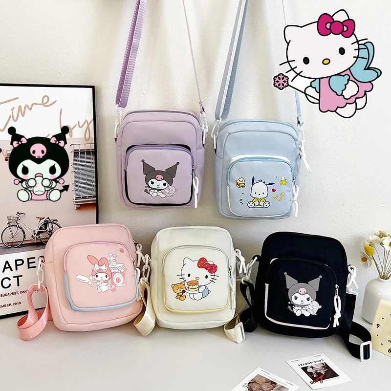 Simpatica borsa quadrata piccola per donna Borsa a tracolla versatile per ragazza giapponese, zaino piccolo monospalla con stampa di cartoni animati portatile