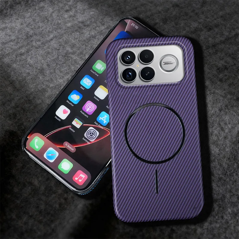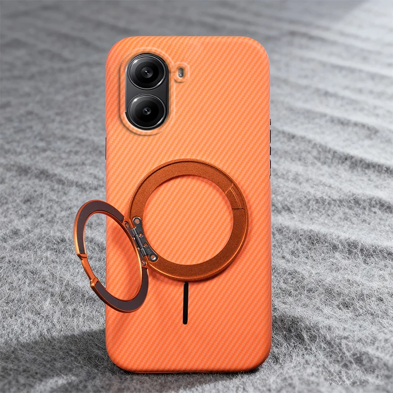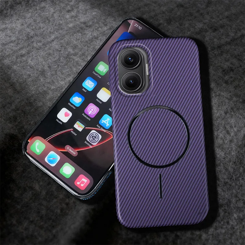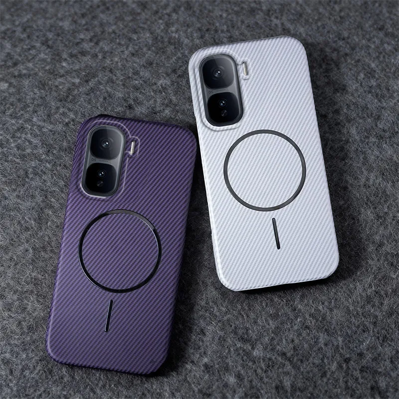 Per Xiaomi Poco X7 Pro Custodia magnetica con ricarica wireless Texture Kevlar Custodia rigida antiurto per PC da metà confezione