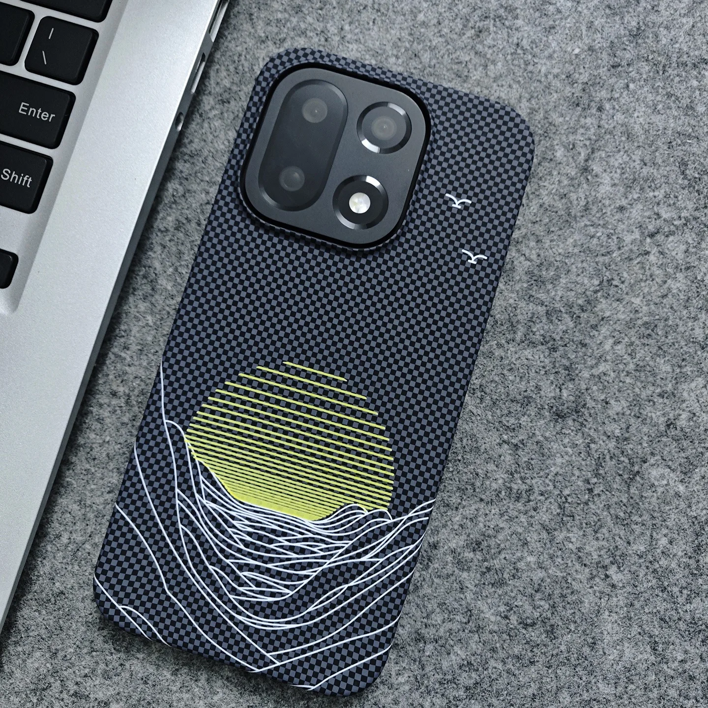Per OnePlus 15 Custodia per PC con retro rigido in fibra di carbonio Texture Sunrise Modello Mezzo pacco Cover per paraurti antiurto Funda