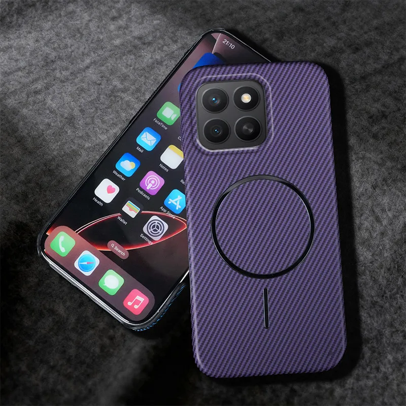 Per Honor X6C 4G Custodia magnetica senza fili Ricarica Kevlar Texture Mezza confezione PC Custodia rigida antiurto per Honor X6C 4G