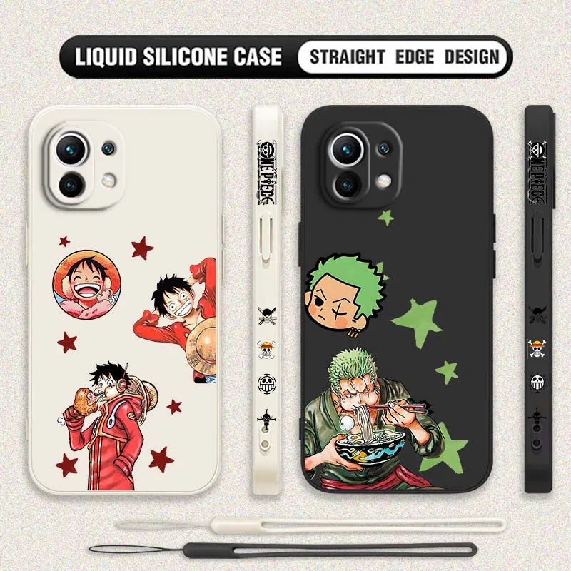 Cartoon One Piece Rufy Zoro Liquido Sinistra Corda Per Xiaomi Mi 14 13T 13 12T 12 11T 11i 11 A3 10T 10 9 Pro Lite Ultra 5G Fonda