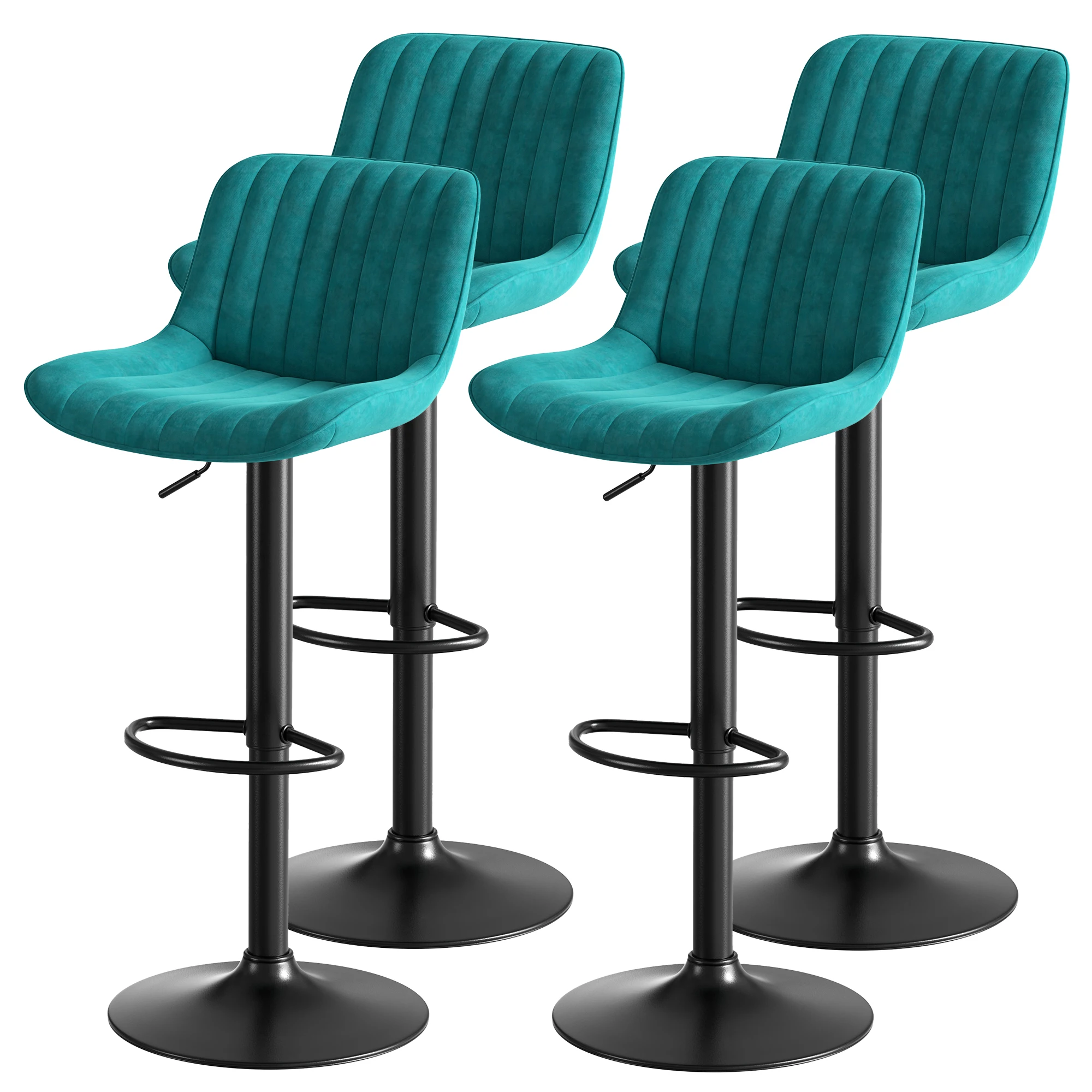 Set van 4 barkrukken - In hoogte verstelbare barstoelen - 360 ° Draaistoelen met rugleuning voor keuken en bistro