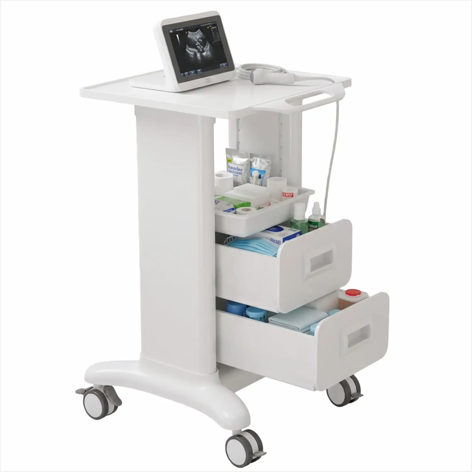 Mobiele echografiekar met 2 laden & bovenste lade, ABS transportkar, 220 LBS draagvermogen, draagbare opslag met vergrendelbare wielen voor laboratorium