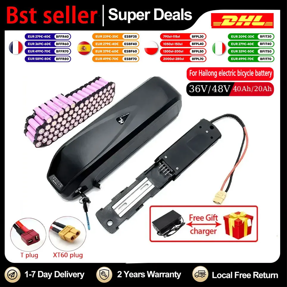 Originele Hailong 48 V 36 V 40AH Ebike Batterij 18650 Mobiele 30A BMS 350 W 500 W 750 W 1000 W Gratis Verzending en Duty-free Gift Charger