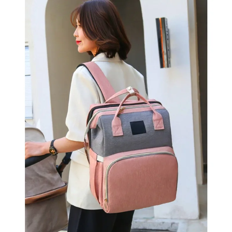 Multifunctioneel opklapbed voor mama, eenvoudig en draagbaar geïsoleerd flescompartiment voor buitengebruik, grote capaciteit moeder- en babytas