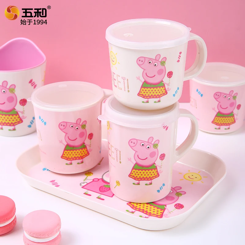 Voor Peppa Pig Servies voor Kinderen Food Grade Melamine Dinerbord Cartoon Verdeeld Dienblad Rijstkom Anti Fall Water Cups Gift