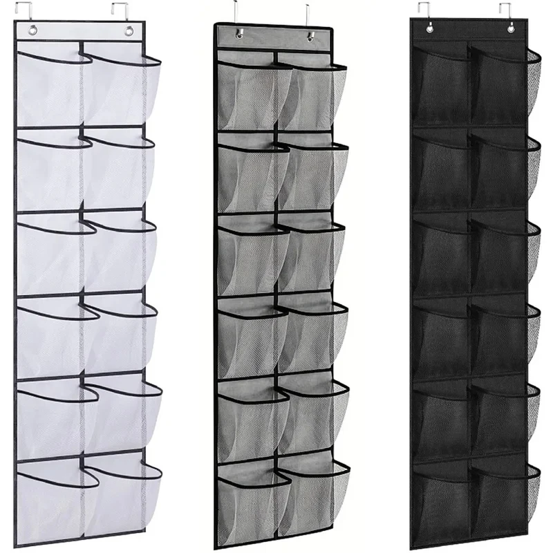 12 Zakken Over-de-deur schoenenorganizer Grote mesh zakken met 2 haken Transparante stof schoenenrek opbergzak voor de slaapkamer